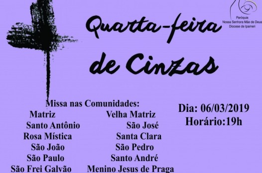 Horário das Missas de Quarta-Feira de Cinzas